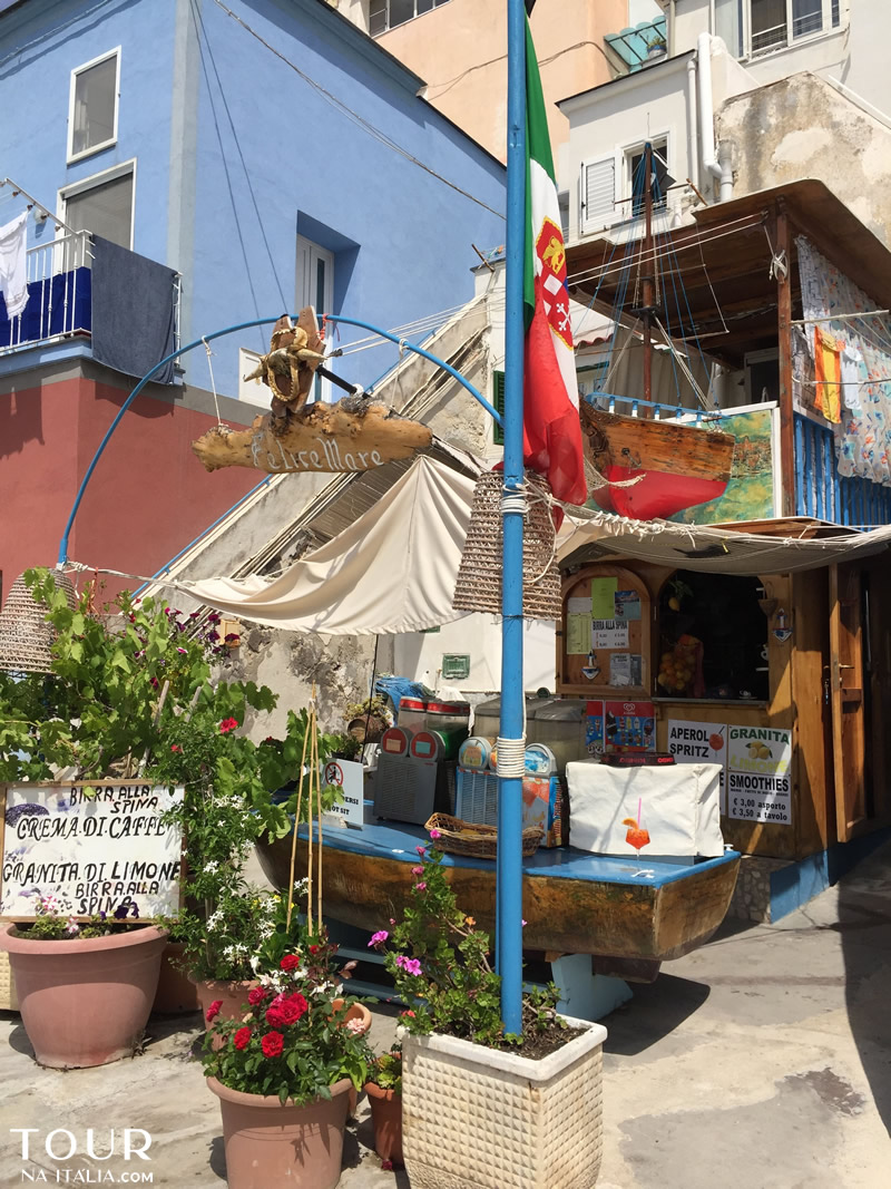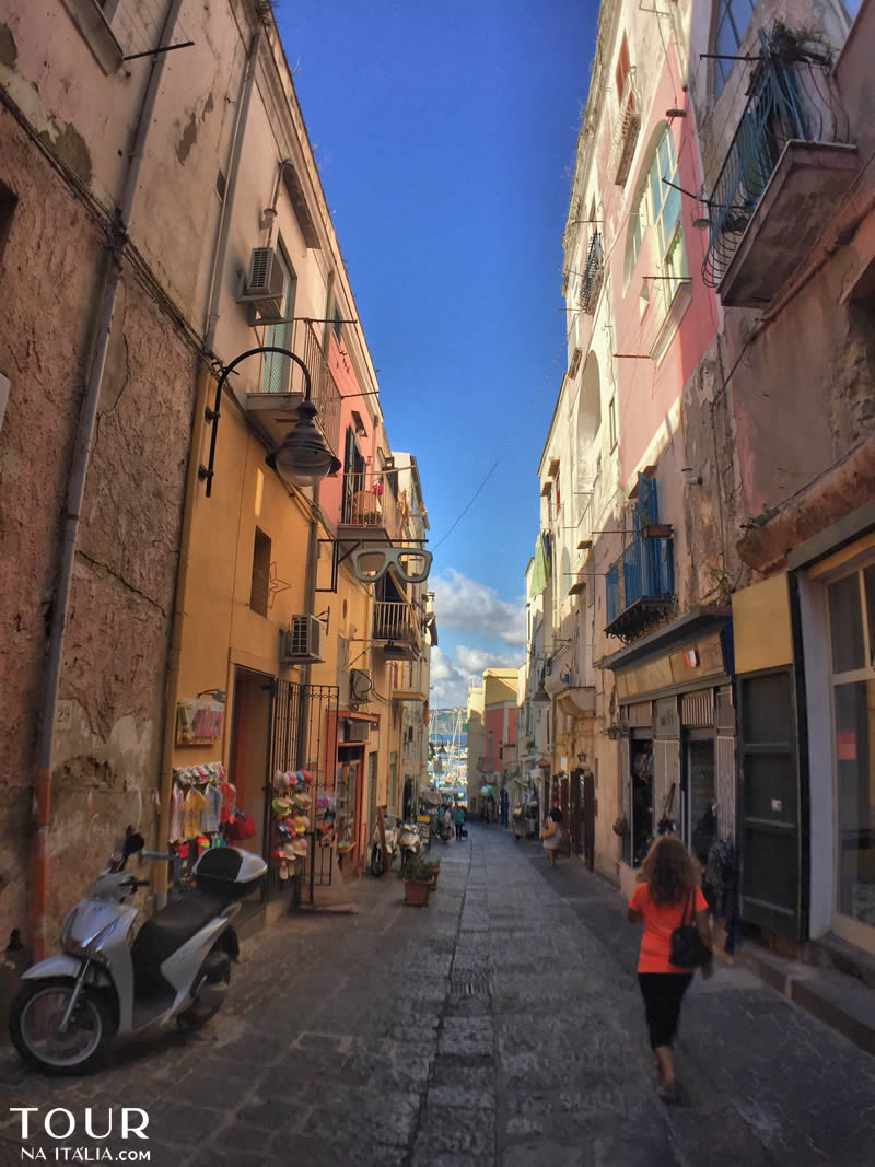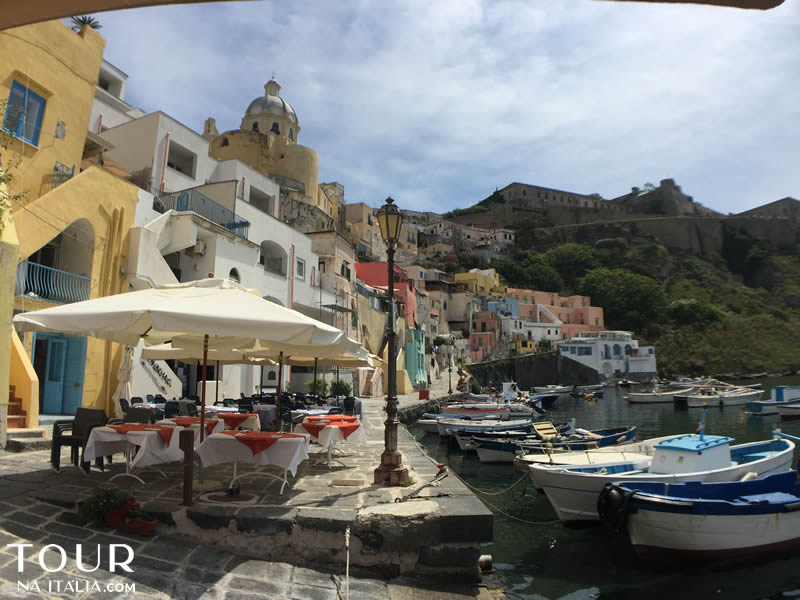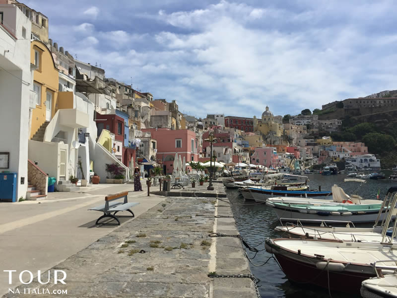 O Centro Histórico de Procida é lindo, marcado por ruas estreitas, casinhas coloridas e muitas ladeiras. Uma das grandes atrações de Procida é justamente caminhar pelas ruas de pedra, e explorar cada cantinho que vai surgindo. Um dos pontos mais famosos do local é a Marina de Corricella, um simpático e charmoso bairro de pescadores, com seus barquinhos ancorados e o colorido das casas. É lá que fica a Locanda del Postino.