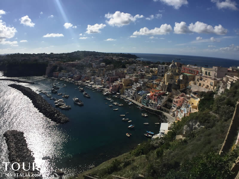 As primeiras informações sobre Procida datam do século VIII a.C., com a chegada de povos gregos vindos da ilha de Eubeia. Durante o período romano a ilha era considerada um ponto estratégico em tempos de guerra, mas não recebendo muita importância em períodos de paz. No início da Idade Média, já com muitos habitantes, Procida era muito atacada por piratas ou por povos estrangeiros, o que facilitou a criação de burgos defensivos nas partes mais altas da ilha, como Terra Murata e Casalle Vascello.