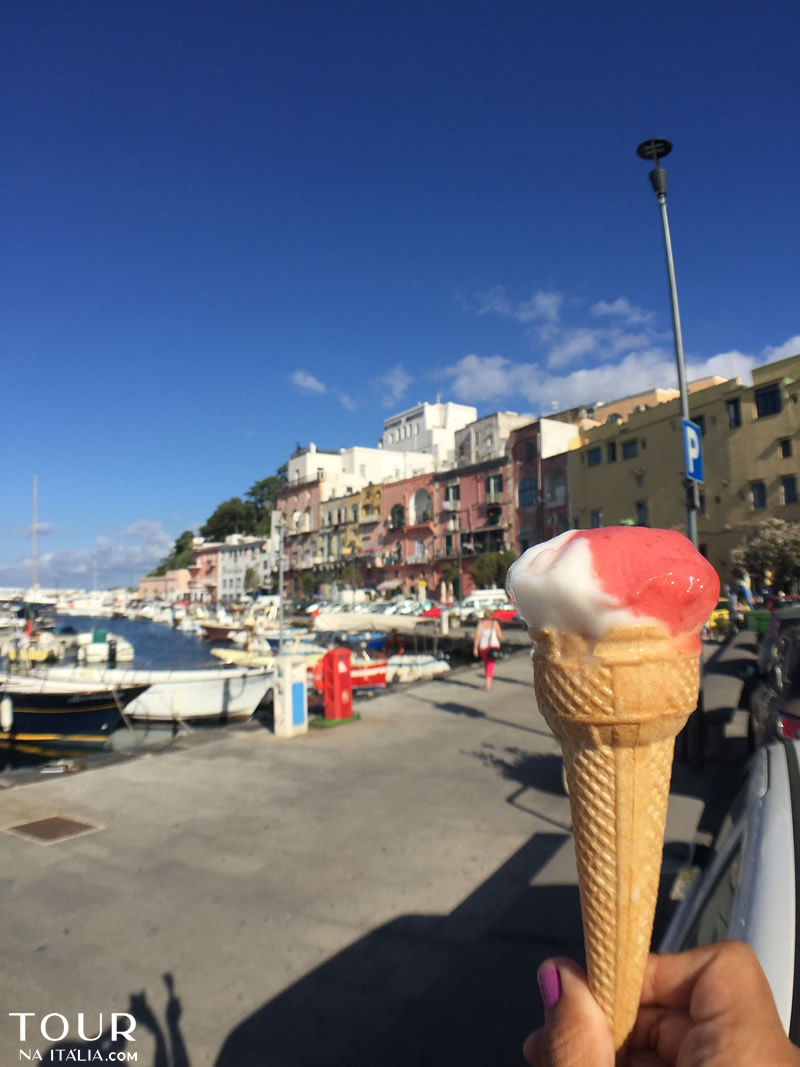 - A ilha está a uma distância de 5 quilômetros de Miseno (ponto mais próximo do continente), e a cerca de 20 quilômetros de Nápoles;
