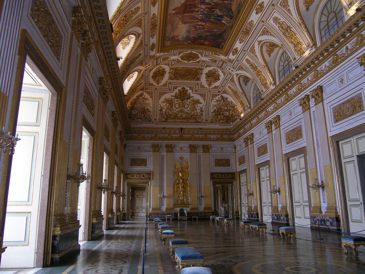 O rei Carlos de Bourbon encomendou o edifício do Palácio Real de Caserta em 1752 a seu arquiteto Luigi Vanvitelli. Para ter idéia da suntuosidade do palácio, vamos aos números. O completo do Palácio tem: