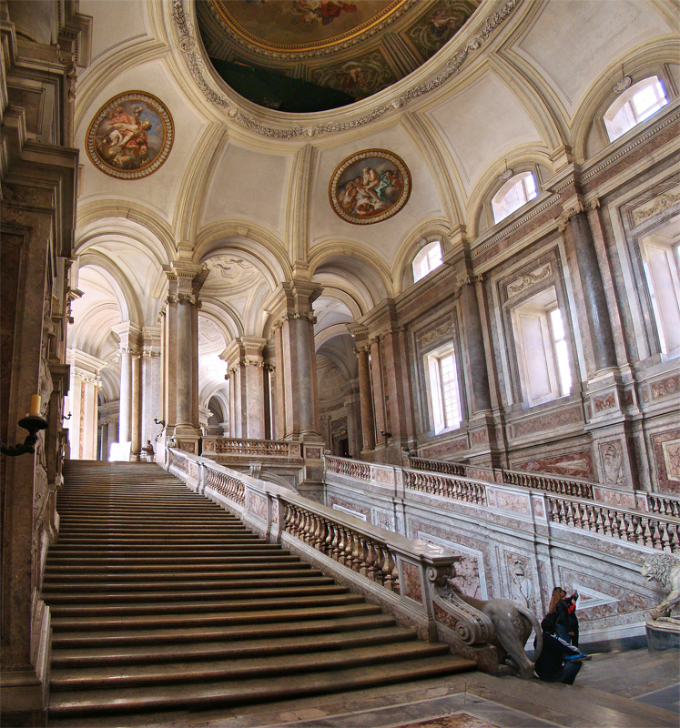 Combinando as influências de Versalhes, Roma e Toscana, o Palácio Real de Caserta – seus magníficos jardins, o complexo de San Leucio e o aqueduto de Vanvitelli – , ao norte de Nápoles, foram projetados de acordo com os desejos de Carlos de Bourbon III por Luigi Vanvitelli, um dos maiores arquitetos italianos do século XVIII. Caserta é considerada um triunfo do barroco italiano, e à frente de seu tempo. As piscinas, fontes e cascatas do jardim são alinhadas através de um ‘efeito telescópio’, estendendo-se até onde os olhos podem ver. O grande palácio, muitas vezes comparado a edifícios luxuosos como Versalhes e o Palácio Real de Madri, é um  Patrimônio Mundial da UNESCO.