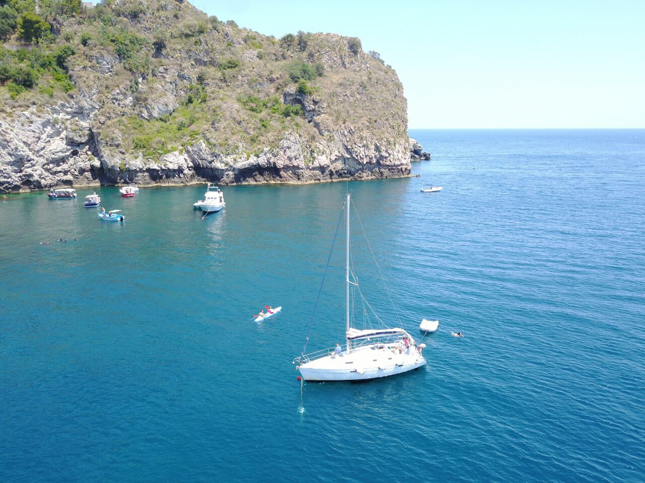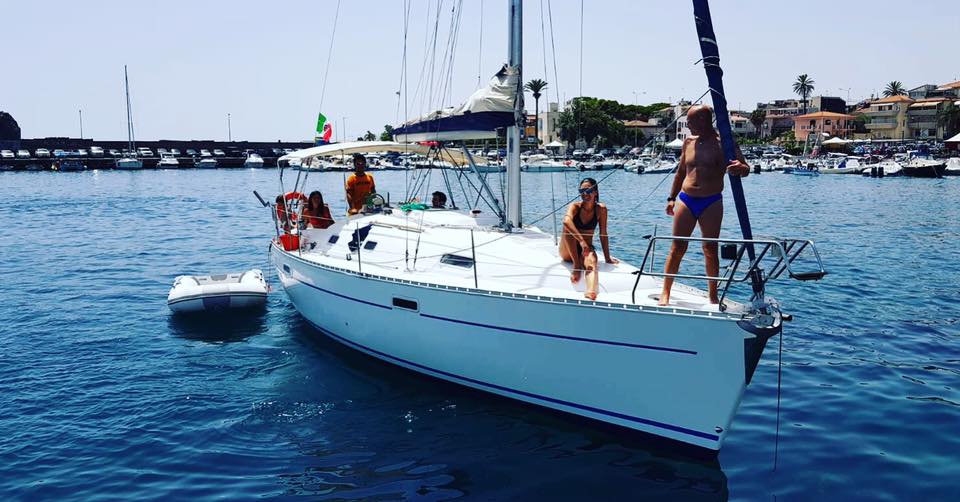 Partida do porto Giardini Naxos (*) em direção à baía de Villagonia. A navegação de 30 minutos – à vela ou motorizada – lhe dará a oportunidade de relaxar enquanto admira as cores vivas do pôr do sol do Mediterrâneo. Ao chegar à baía, terá algum tempo para desfrutar de um mergulho antes de tomar um delicioso aperitivo à base de produtos tradicionais, pão e vinho local: a solução ideal para terminar o dia em total relaxamento.