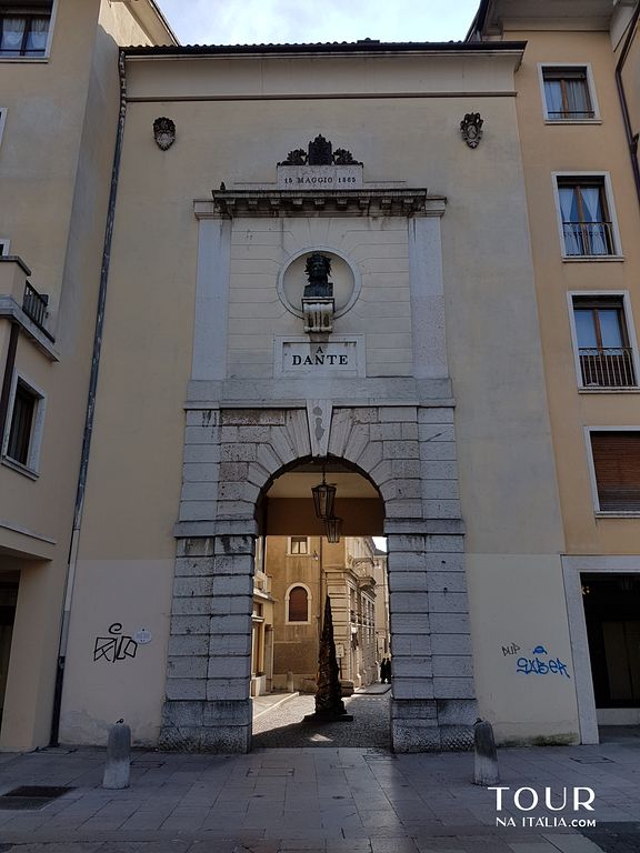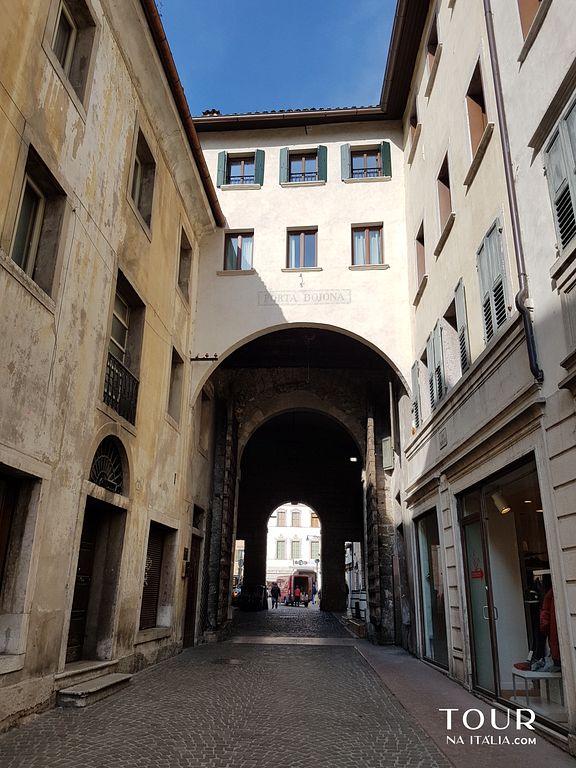 Ela leva o nome de uma torre que ficava ao seu redor e constituía um complexo fortificado. Seu arco interno foi levantado no século 13, por Vecello da Cusighe. Já seu estilo renascentista foi projetado por Niccolò Tagliapietra, em 1553. Tendo passado por restauros recentes, é sempre impressionante admirar a sua construção.
