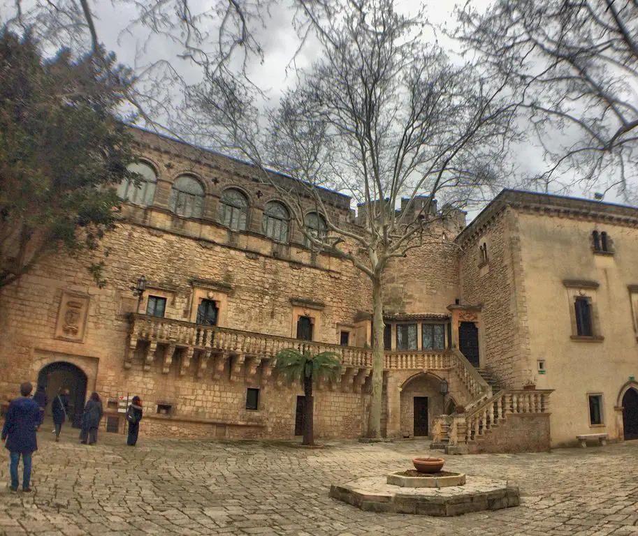 Passou por várias famílias feudais antes de se tornar a sede do Dentice de Frasso, os últimos senhores, e o nome que permanece no castelo desde então. É uma estrutura imponente com três torres, paredes imponentes e uma capela dedicada a Santa Ana. O acesso é feito pela charmosa arcada Porta Ostuni.