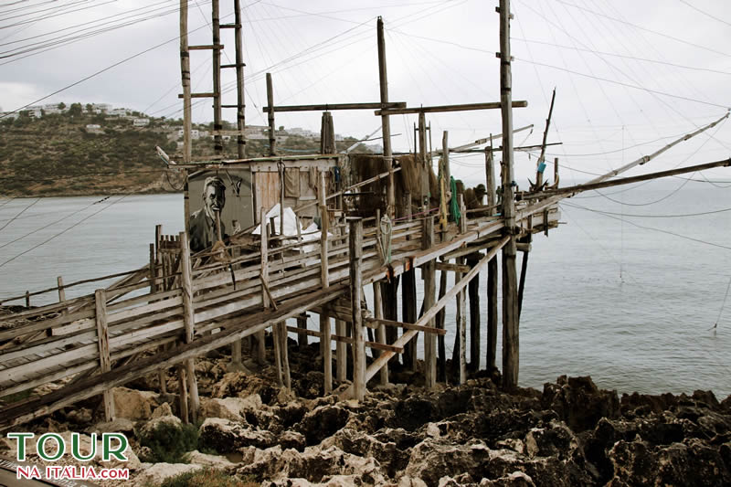 Uma tradição local que remonta ao tempo dos fenícios é a de pescar com o chamado “Trabucchi”, um sistema de pesca muito antigo usado no norte do Gargano, que consiste em pequenas construções de madeira colocados nas rochas que possuem uma grande rede de pesca. São um incrível trabalho de engenharia! Não deixe de visitar, tomar um aperitivo ou almoçar no Trabucco da Mimi, indicadíssimo! Ou ainda você pode admirar o Trabucco di Monte Pucci na mesma região.