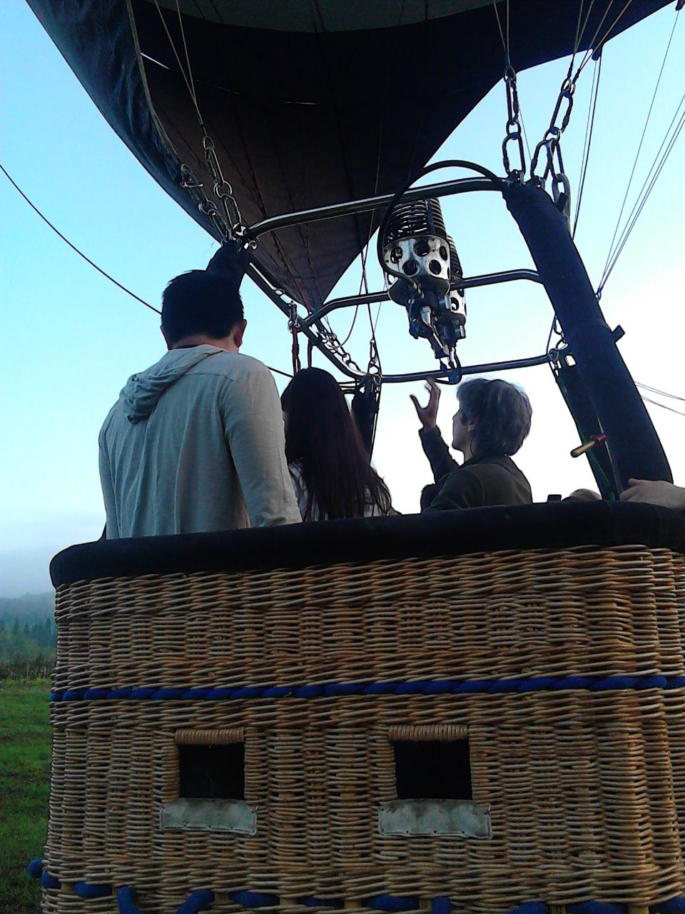 Nós voamos no início da manhã, logo após o amanhecer. Quando chegarmos ao campo de lançamento, o piloto e a tripulação colocam para fora o balão e começamos a inflá-lo, isso é feito através deum sopro de ar frio dentro do envelope (a enorme saco colorido) com um ventilador poderoso. Quando o balão está meio cheio com ar frio, é hora de inflar com ar quente dos queimadores, que é soprado no balão e ele se ergue verticalmente, pronto para voar! Esse trabalho leva cerca de 30 minutos, e o voo leva aproximadamente 1 hora, dependendo das condições do vento e do tempo e pode variar a critério dos pilotos. Um balão é dirigido pelos ventos, o piloto somente assegura onde possamos pousar em um campo grande, em uma pista de terra. Parte da magia vôo de balão é que você nunca sabe exatamente onde você pode pousar. O piloto mantém uma estreita vigilância constante sobre os padrões climáticos e antes do vôo vai consultar informações meteorológicas a partir de várias fontes e com o aeroporto. Com esse conhecimento é determinado por onde voar e em que direção geral o voo irá tomar. Os ventos em altitude costumam viajar em diferentes camadas e é esses ventos em camadas que são utilizadas para navegar o balão em torno dos céus.