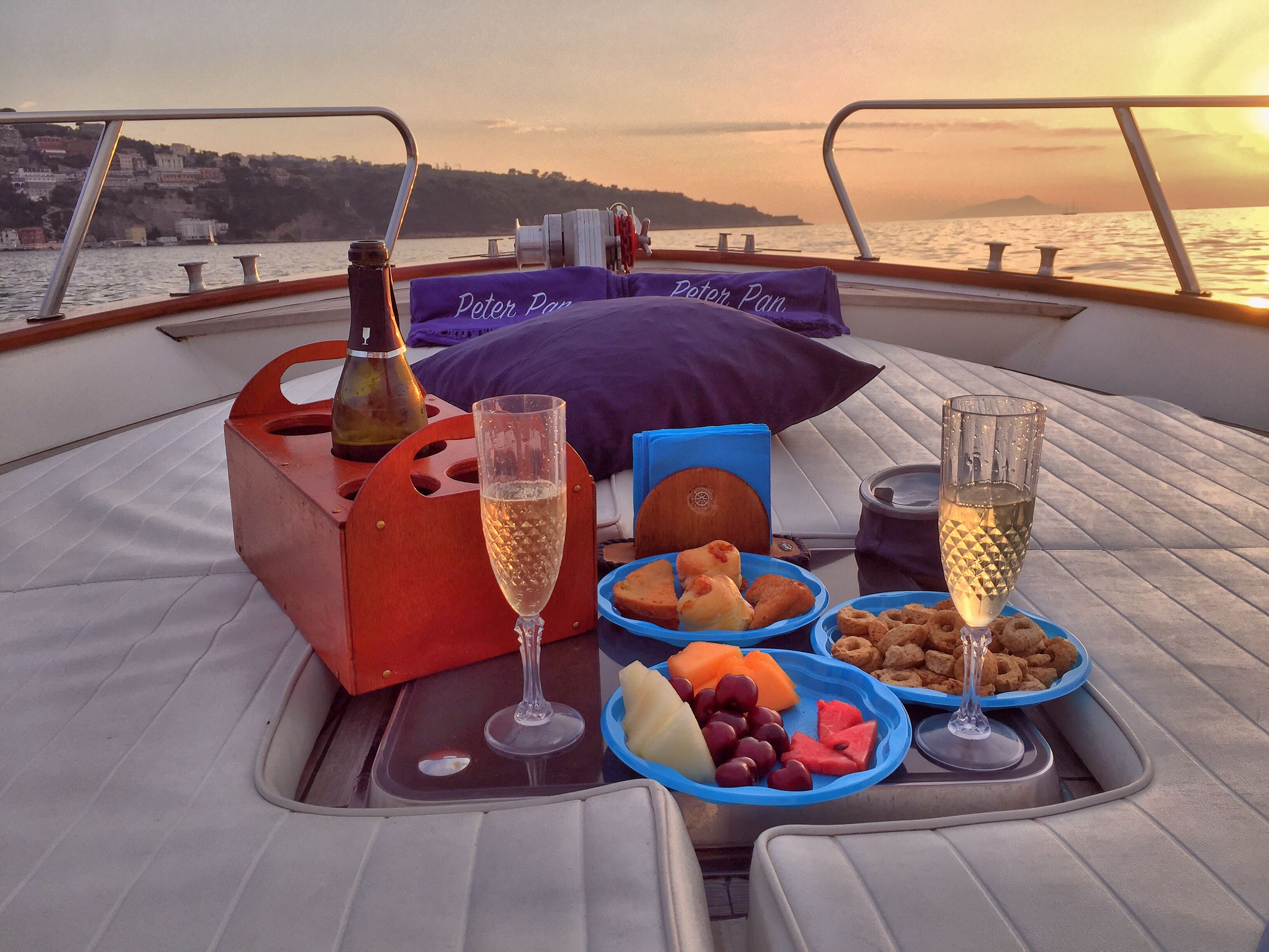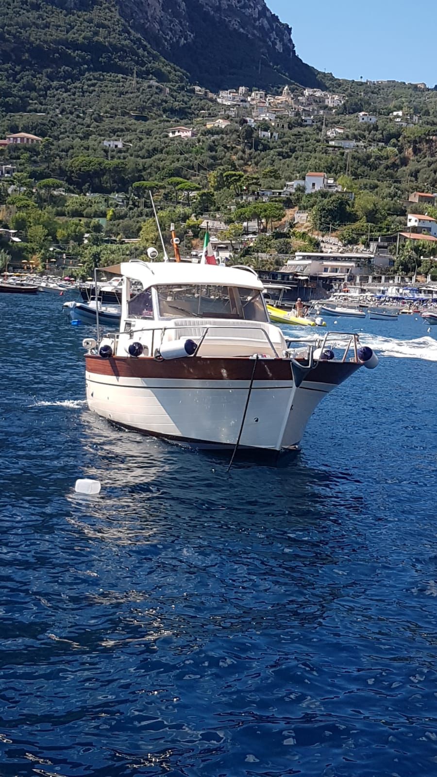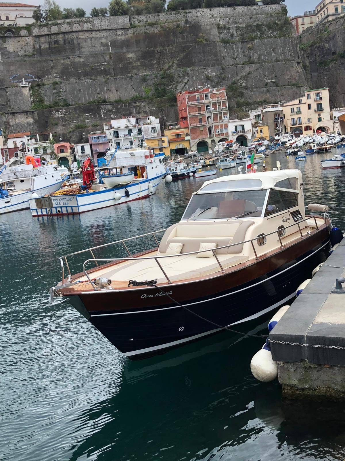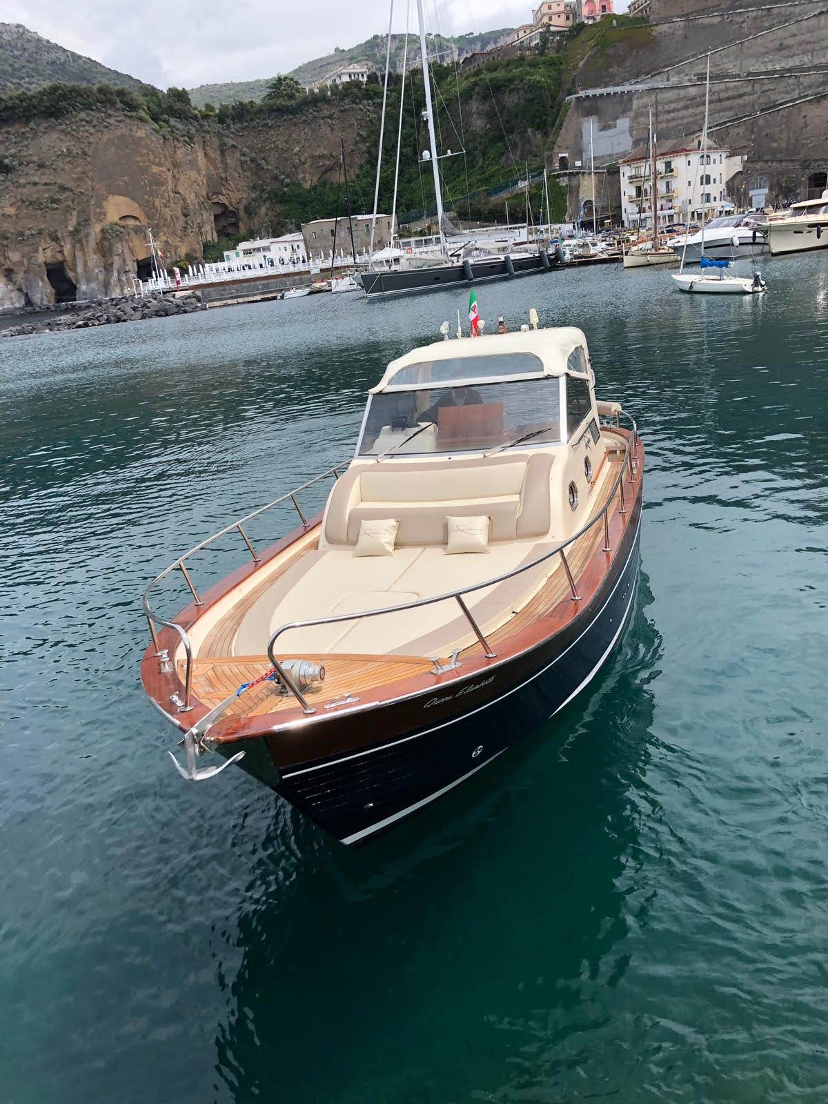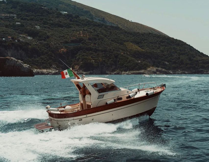 Saímos do cais de Positano no horário previamente acordado e, passo a passo, visitamos todas as aldeias da costa, Arienzo como primeira parada faremos uma pausa contando o. História Do imperador Tibério e seu moinho, continuamos até a vila. Três vilas, tendo chegado à maravilhosa localização de laurito perto do hotel San Pietro faremos uma das primeiras paradas para um mergulho onde a vista é espetacular, continuamos até o tritão, mostraremos a famosa escada de pedra e contaremos sobre a. Suas origens antigas. Aqui chegamos a praiano com as suas enseadas características, e paramos na gruta do pirata dentro da qual os nossos hóspedes também podem nadar, haverá também história e lendas que remontam ao nome da gruta. Continuamos a enfurecer o maravilhoso fiorde onde tomaremos outros banhos e depois a maravilhosa bacia marítima onde podem visitar a gruta esmeralda a um custo extra de 5 euros por pessoa, e depois a encantadora. Parada na praia de Santa Croce para tomar banho nas águas cristalinas e nadar na maravilhosa rocha do elefante. Aqui neste local nos organizamos para preparar o pick nick a bordo com a clássica cesta de produtos típicos locais, um bom prosecco. Fruta fresca da época. Obviamente. Não vai faltar boa música. Pouco depois pararemos para visitar Amalfi, onde terão tempo para ver a catedral saborear um excelente limoncello, mas também porque não uma pastelaria na pastelaria Pansa e depois voltar a bordo para outros banhos e paradas para chegar novamente a Positano.