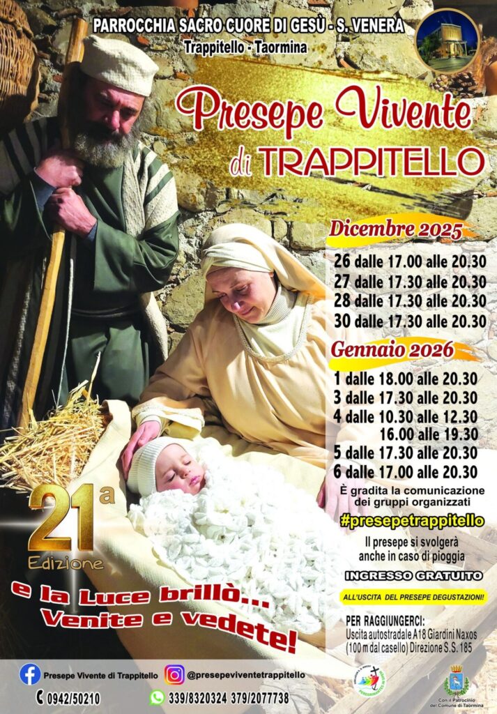 Uma representação singular da Natividade, um verdadeiro cenário sob as estrelas com mais de 150 figuras em trajes palestinos que (durante 4 dias de 26 a 29 de dezembro de 2025 – várias apresentações diárias, das 17h00 às 23h00, receberão visitantes de toda a Sicília) reproduzem os principais cenas da natividade, recortes da vida social da Palestina da época, ligadas à presença militar da Roma imperial com Herodes, sua corte e os soldados e cenas exclusivamente de cariz religioso. Entre os mais evocativos estão a aparição do Anjo e a fuga do recenseamento de Maria e José de Nazaré para Belém. Uma trilha sonora e uma narração (cada cena não tem diálogo entre os atores) descrevem as cenas e atmosferas da típica paisagem urbana da época, a caverna onde Jesus nasceu é reconstruída e colocada sob o arco da ‘antiga Torre Normanda de Ventimiglia adjacente à Piazza del Popolo.