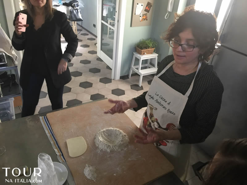 No segundo dia fui direto à cidade de Alba, onde tive uma das experiências mais legais, a aula de culinária piemontese com a Fernanda (nos contate para fazer esta aula aqui). A Fernanda é uma italiana que fala português perfeitamente porque fez uma viagem atraves de uma ONG no Brasil para fazer voluntariado. Ela ensina pratos italianos, mas sobretudo pratos típicos Piemontese, como a massa “plin” que citei acima. O “plin” é uma massa recheada, como um ravioli, porem que é fechado a mão, fazendo um “plin”, daí vem o nome. Durante a aula ela ensina desde ideias de entrada, massa, carne, acompanhamento e sobremesa, tudo com uma boa tacinha de vinho e muito alegria. Ao final da aula almoçamos os pratos que nos fizemos.