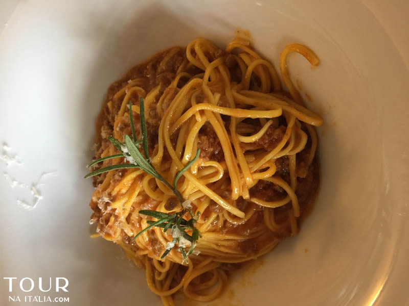 Pausa para o almoço em outra cidade, em Castiglioni Falletto, no Ristoranti Le Torre. O restaurante é localizado no centro da cidade, e o casal de proprietários são muito gentis. O pão servido é caseiro, delicioso, menu cheio de pratos tradicionais, às vezes revisitados. Pedimos uma tigela de tajarin (espaguete muito fino, típico da região) com molho de carne: ótimo! Um prato que por si só vale a visita ao restaurante. A vista das colinas é incrível (dá pra ver no vídeo).