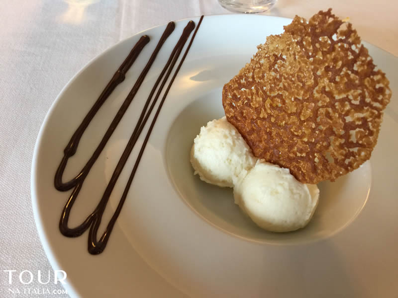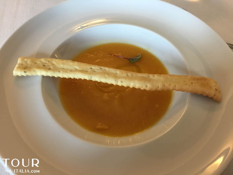 Neste dia jantei junto com o pessoal do Consórcio no restaurante do hotel, o Guido da Castiglione, que possui uma estrela Michelin. A cozinha é tipicamente mediterrânia e Piemontese com experimentação contemporânea, para atender aos gostos dos muitos turistas estrangeiros, com respeito pela tradição e a matéria-prima que vem quase exclusivamente das zonas circundantes. Um dos pratos mais curiosos foi o “plin al tovagliollo“, ou seja a massa tipica dessa região do Piemonte (que eu explico mais afrente no texto), que neste restaurante, tem a característica de ser servido “como antigamente”, no guardanapo de linho, sem nenhum tipo de molho, para ser degustado com a mão! Sem colher!!!