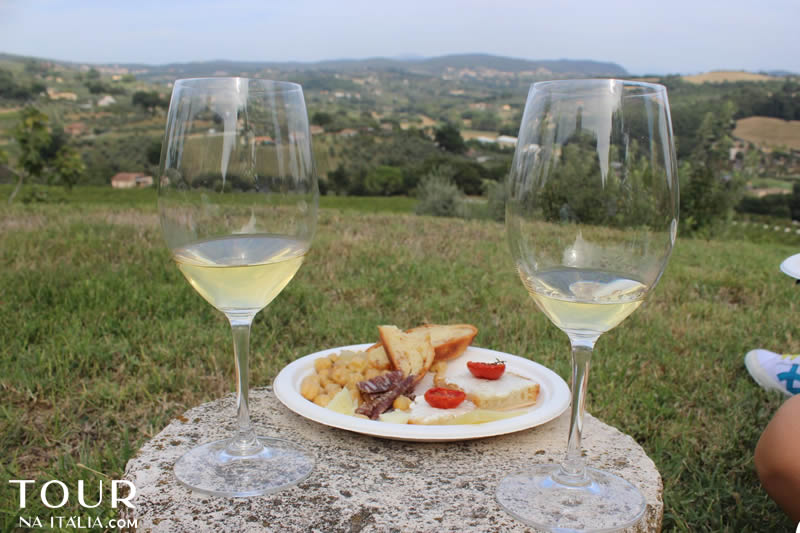 Eles produzem, nada mais nada menos, que 12 rótulos! As uvas principais da região são: ciliegiolo, que eles vinificam em pureza, grechetto, aleatico, malvasia, trebbiano e sangiovese.