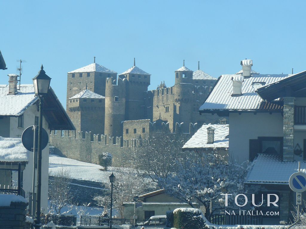 - Castello de Fénis: é famoso por sua arquitetura extraordinária e pelo poder evocativo das suas torres e muralhas. Esta, estrutura harmoniosa e complexa, que é organizada de uma forma concêntrica em torno de um pátio interno, lembra a imagem quase de um conto de fadas. As torres do castelo foram adicionados em meados do século 14 por Aimone de Challant. A propriedade foi então detida pelos Senhores do Challant até 1716, antes de eventualmente ser transformada em uma casa de campo, comprada em 1895 por Alfredo de Andrade. O Casstelo Fénis é aberto a visitas, possui um pátio interior decorado com afrescos incríveis. No térreo há uma sala de armas e de jantar, e uma capela no primeiro andar.
