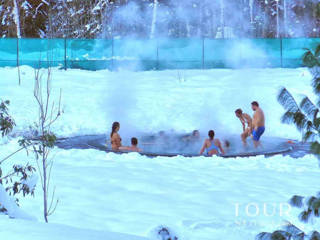 O mais interessante é ir no alto inverno, pois há uma séria de piscinas e saunas externas, onde é possível descansar nas águas quentes vendo o Monte Blanc, ainda é interessante sair da piscina e enfrentar a neve literalmente pegando fogo (olhe a foto abaixo), esse efeito acontece porque a água esta muito quente e a temperatura externa abaixo de zero.