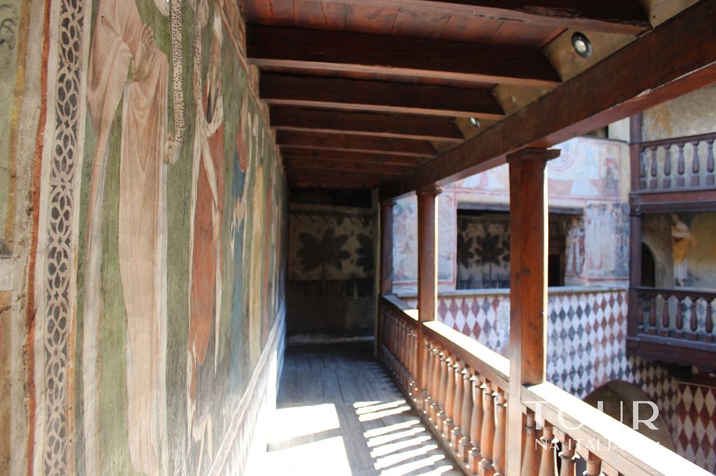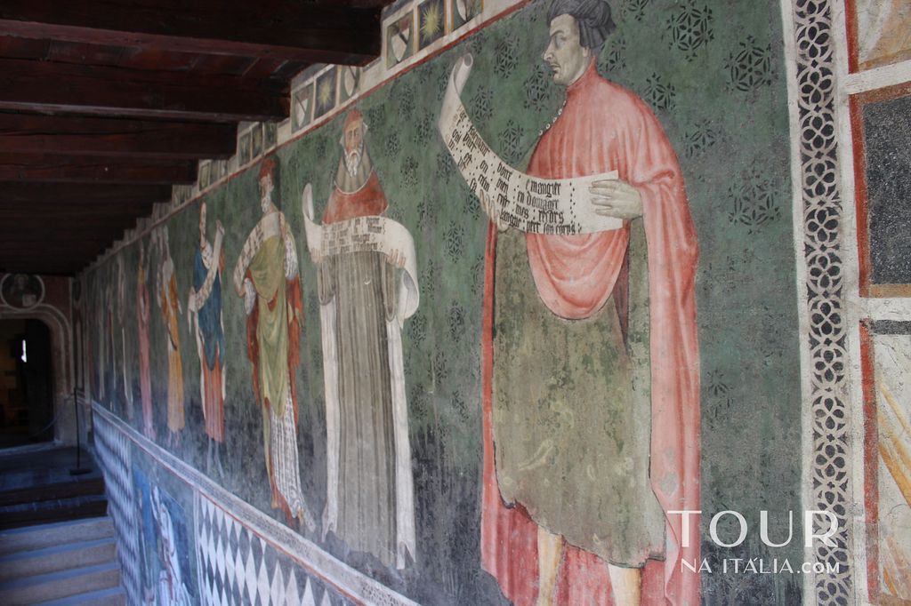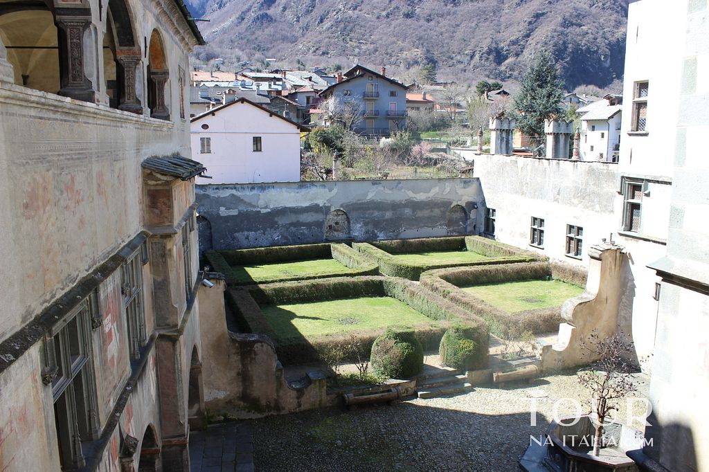 - Castello de Issogne: Possuído pelo Bispo de Aosta até 1379, o Castelo de Issogne foi renovado e ampliado em torno a 1400 por Ibleto de Challant. Sua aparência atual foi modificada por George de Challant, que o transformou em uma residência de luxo. Depois de ter vários outros proprietários, foi comprado pelo artista Vittorio Avondo e renovado em 1872, ano que doou ao Estado. Ele é aberto a visitação e há muito para ver no castelo em si também, incluindo o Salão do Barão adornado de afrescos, a Capela com abóbadas finamente decorados, o “O quarto do rei da França”, onde o teto é coberto lillies, e o quarto “Cavalheiros de São Maurice” com cruz da Ordem pintado nele.