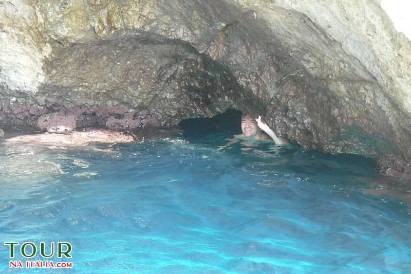 Entre outras cavernas, visíveis graças aos muitos passeios de barco organizados durante o verão, recomendo a Grotta del Lago (gruta do lago), que se pode chegar com uma curta caminhada nas rochas. Esta gruta ainda possui correntes de água doce que criam jogos de cores incríveis.