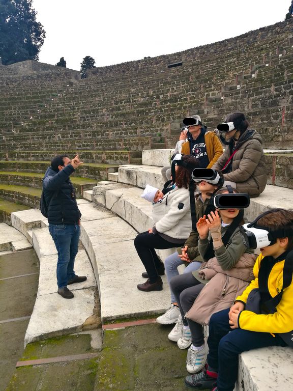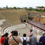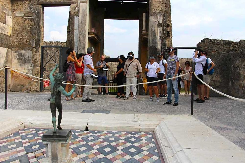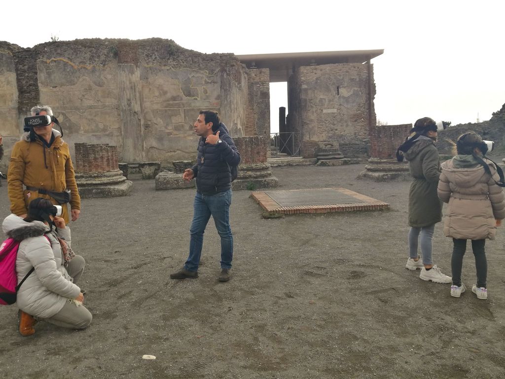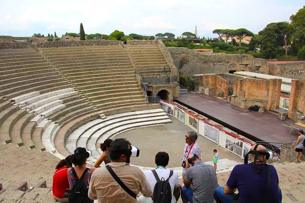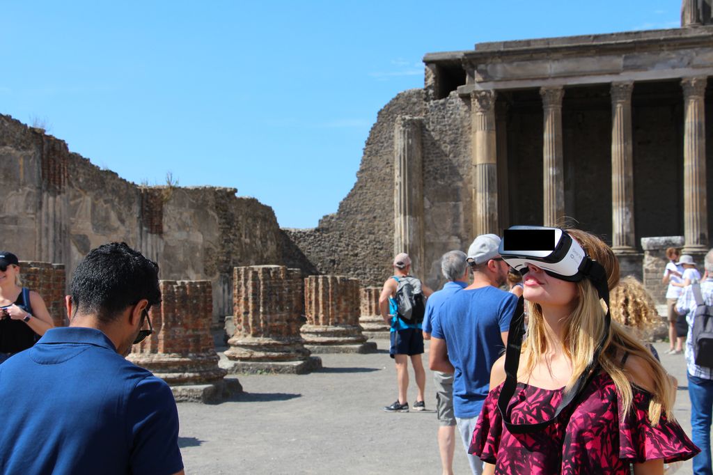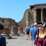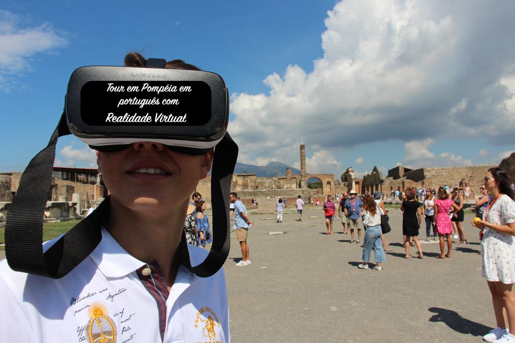 Descubra e aproveite as ruínas da antiga Pompéia sob a experiência de realidade virtual em 3D acompanhando de um guia autorizado em português. Nossos óculos de realidade virtual lhe farão voltar no tempo, para visitar as atrações mais importantes desta cidade antiga, e para fazer você “sentir” romano entre os romanos. Junto com um guia autorizado em português, você vai admirar o Fórum, o centro da vida da cidade e a imponente Basílica. Vamos levá-lo aos belos banhos, à Casa do Fauno e à Padaria. Nós lhe daremos a oportunidade de assistir ao treinamento no Quatriportico e a uma apresentação no Grande Teatro. Você também vai experimentar a vida noturna ao redor do Lupanar (bordel). Corra porque, o Pompéia 79 a.c. está esperando por você!